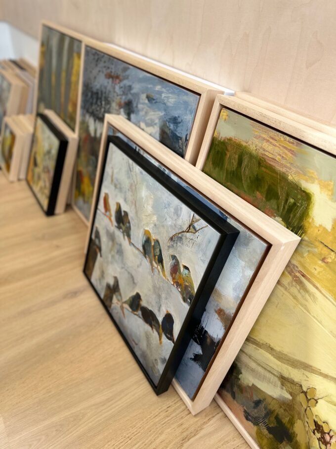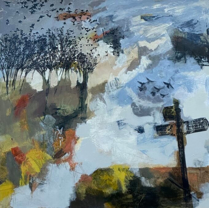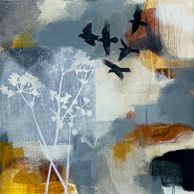 I’m a relatively new artist, but through social media, excellent courses, and local art groups, I’ve connected with many talented artists. This community has been incredibly supportive and generous. With their encouragement I have started to exhibit locally and open my studio to visitors. Most of my work is acrylic and mixed media on wooden panels.